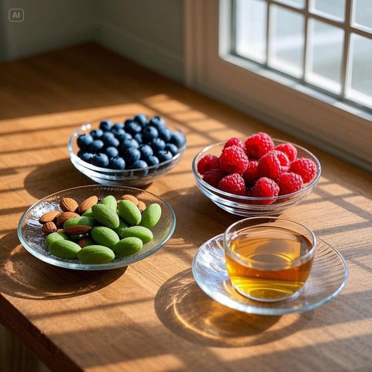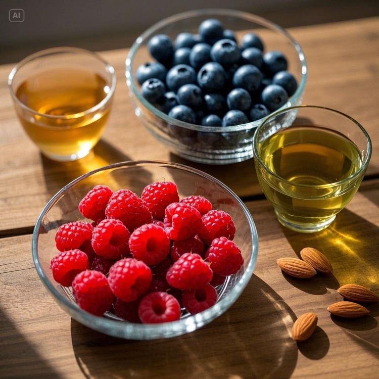 블루베리, 라즈베리, 녹차, 견과류 등 항산화 성분이 풍부한 식품은 염증 완화와 바이러스 억제에 효과적입니다.