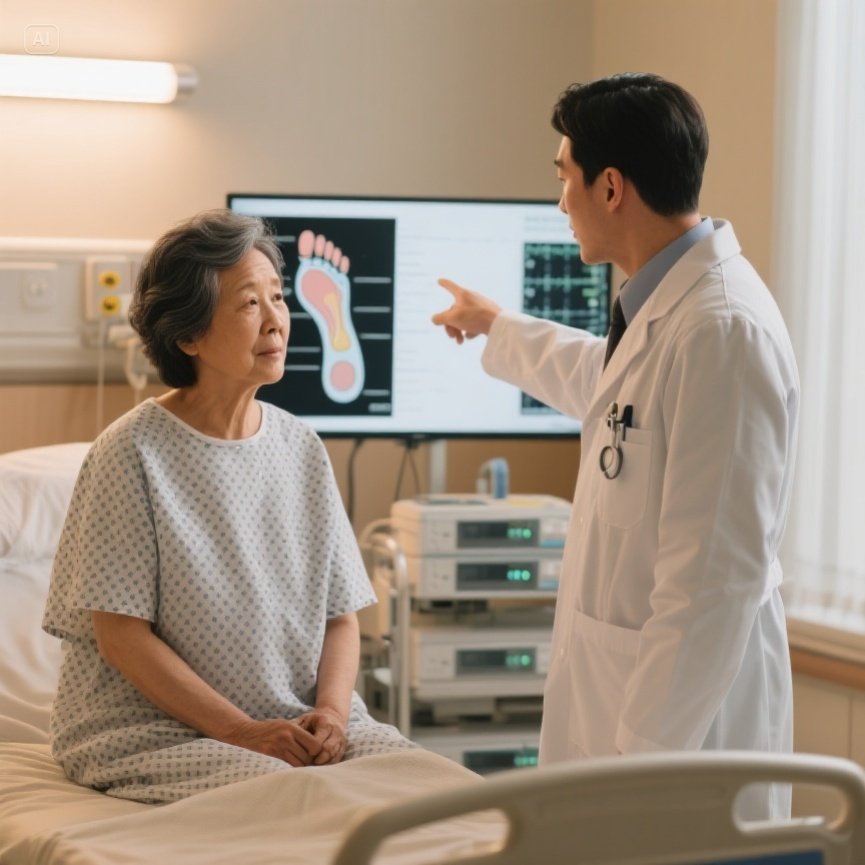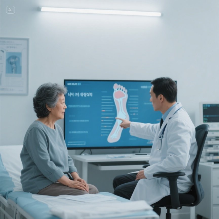 통풍은 요산 결정이 관절에 쌓여 염증을 유발하며, 당뇨병성 신경병증은 말초신경에 손상을 일으켜 발 전체에 통증, 무감각, 저림 등의 증상이 나타날 수 있습니다.