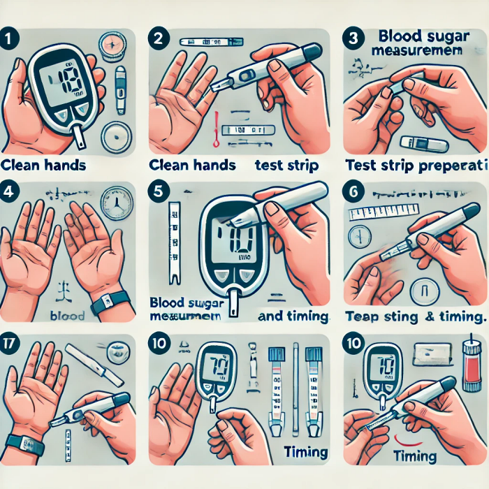 정확한 혈당 측정은 체계적인 관리의 시작입니다. 아래 단계를 참고하세요:
