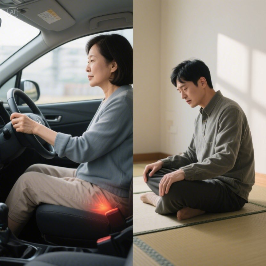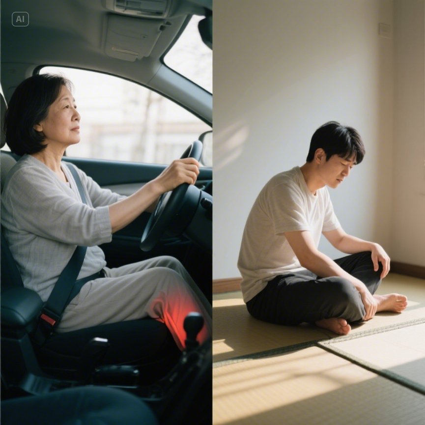 - 오른쪽 엉덩이 통증은 운전 습관, 골반의 불균형, 한쪽 체중 쏠림 등의 영향으로 발생할 수 있습니다.