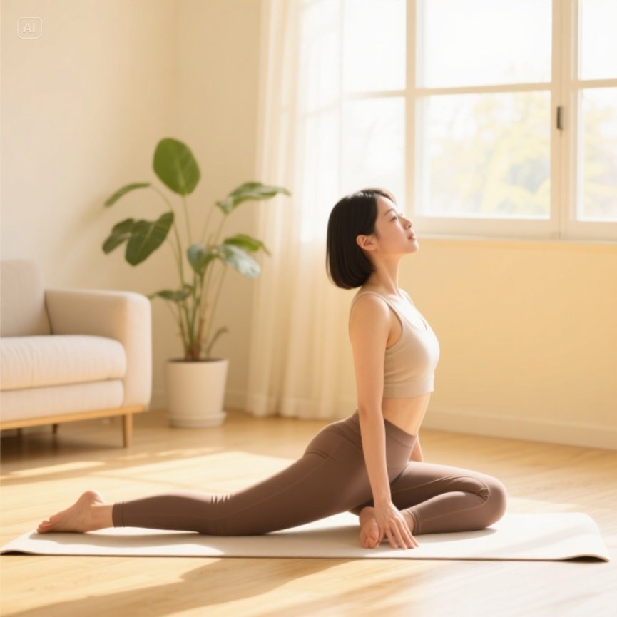 - 이상근 스트레칭, 고양이 자세, 비둘기 자세 등 요가 활용