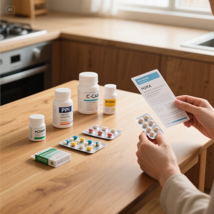| H2RA | 히스타민 수용체 차단. 식후 30분 복용. 졸림, 어지럼증 가능. 장기 복용 시 내성 우려 있음. |