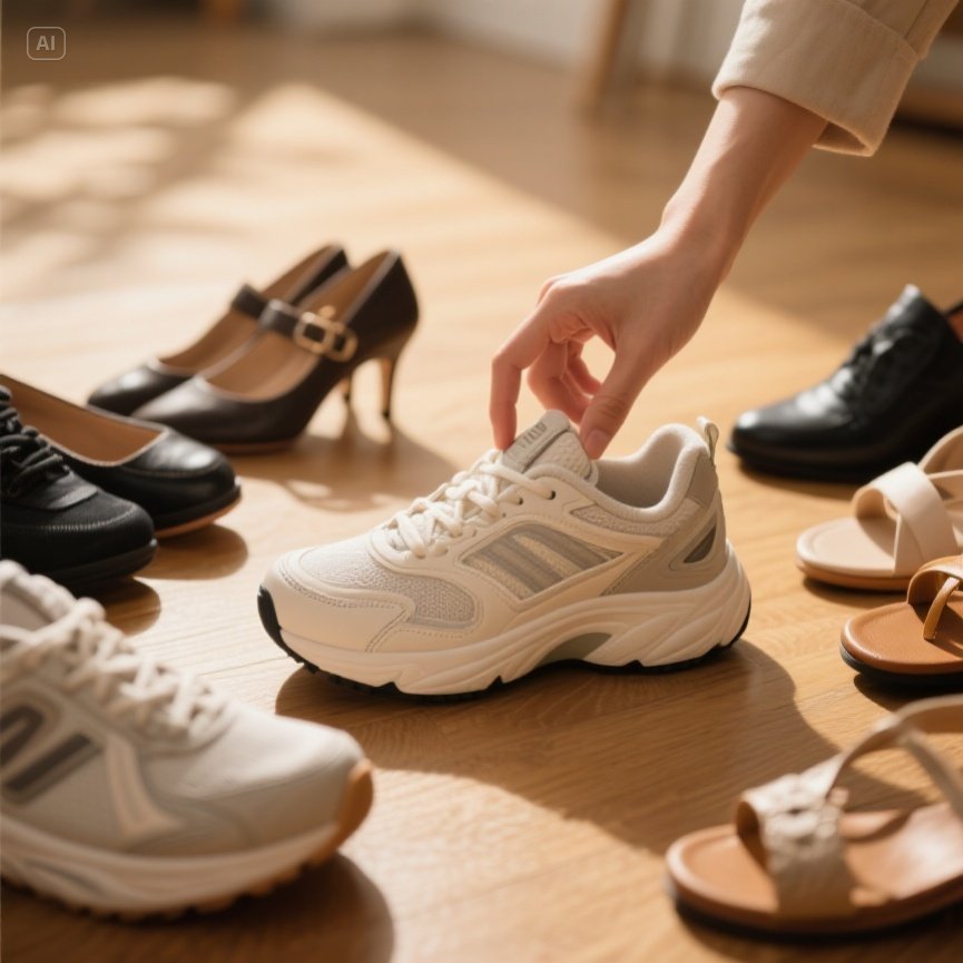 • 딱딱한 구두, 플랫슈즈, 하이힐은 피하고, 충격 흡수가 뛰어난 운동화를 신으세요.